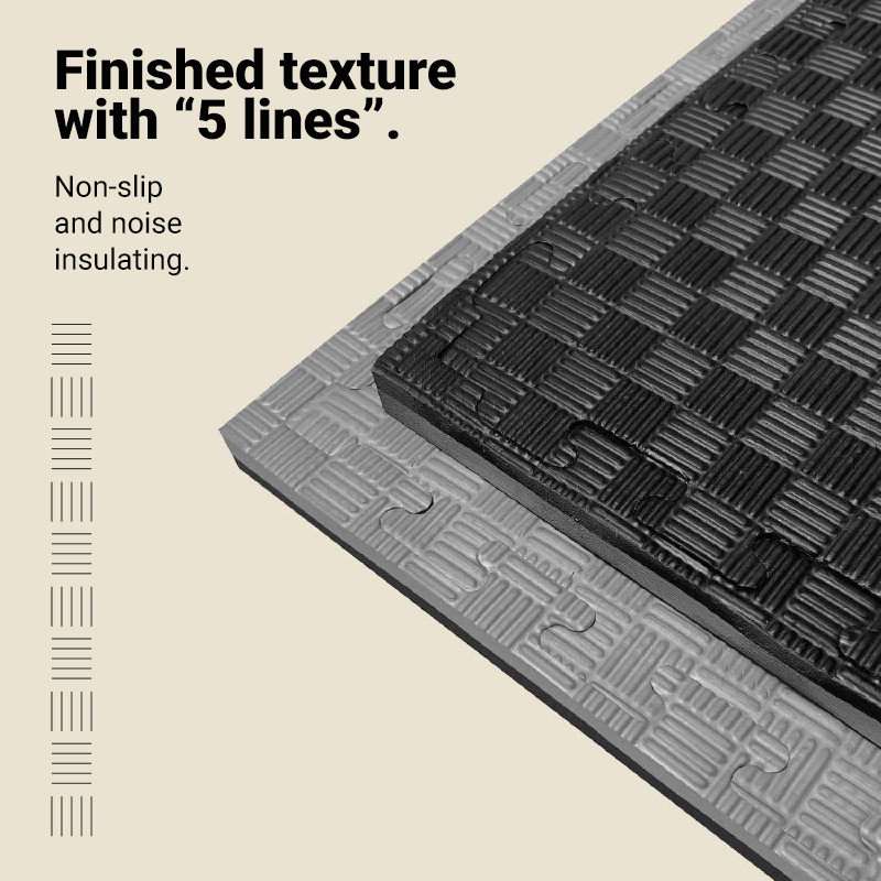 Our 40mm puzzle tatami with a non-slip "5 lines" surface is characterized by: